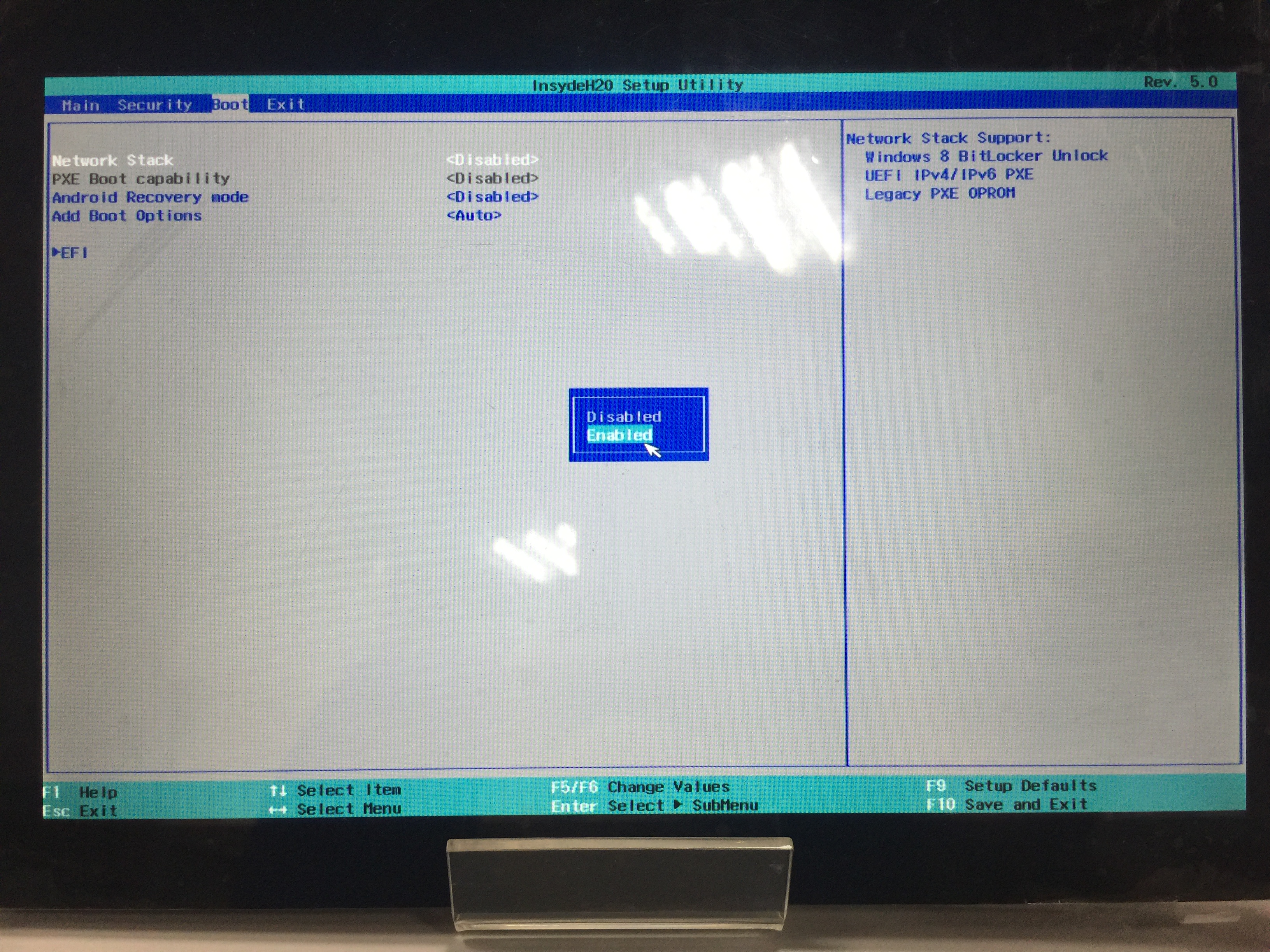 2. Please select “Boot” table and “Network Stack” as below then enable it.